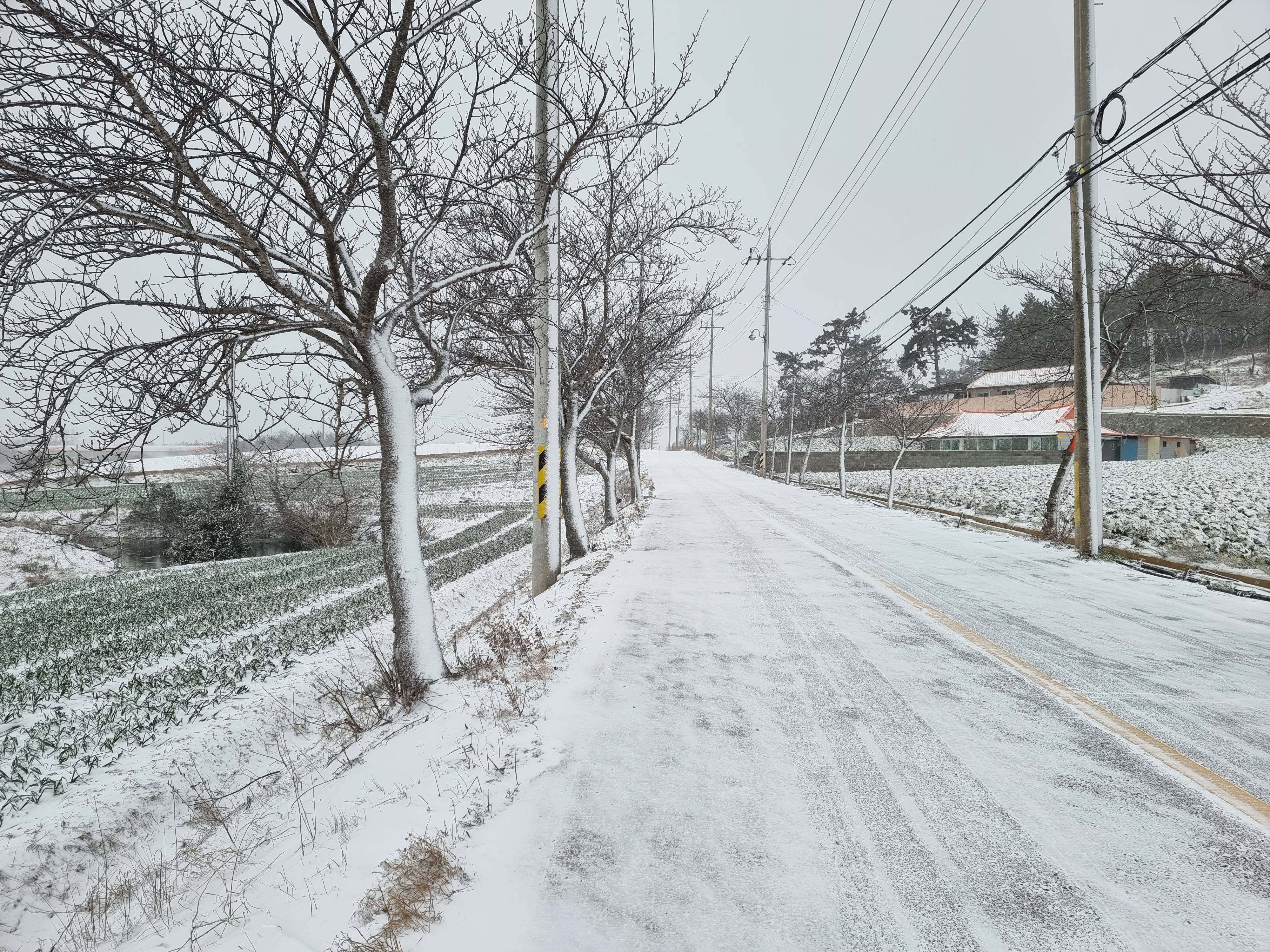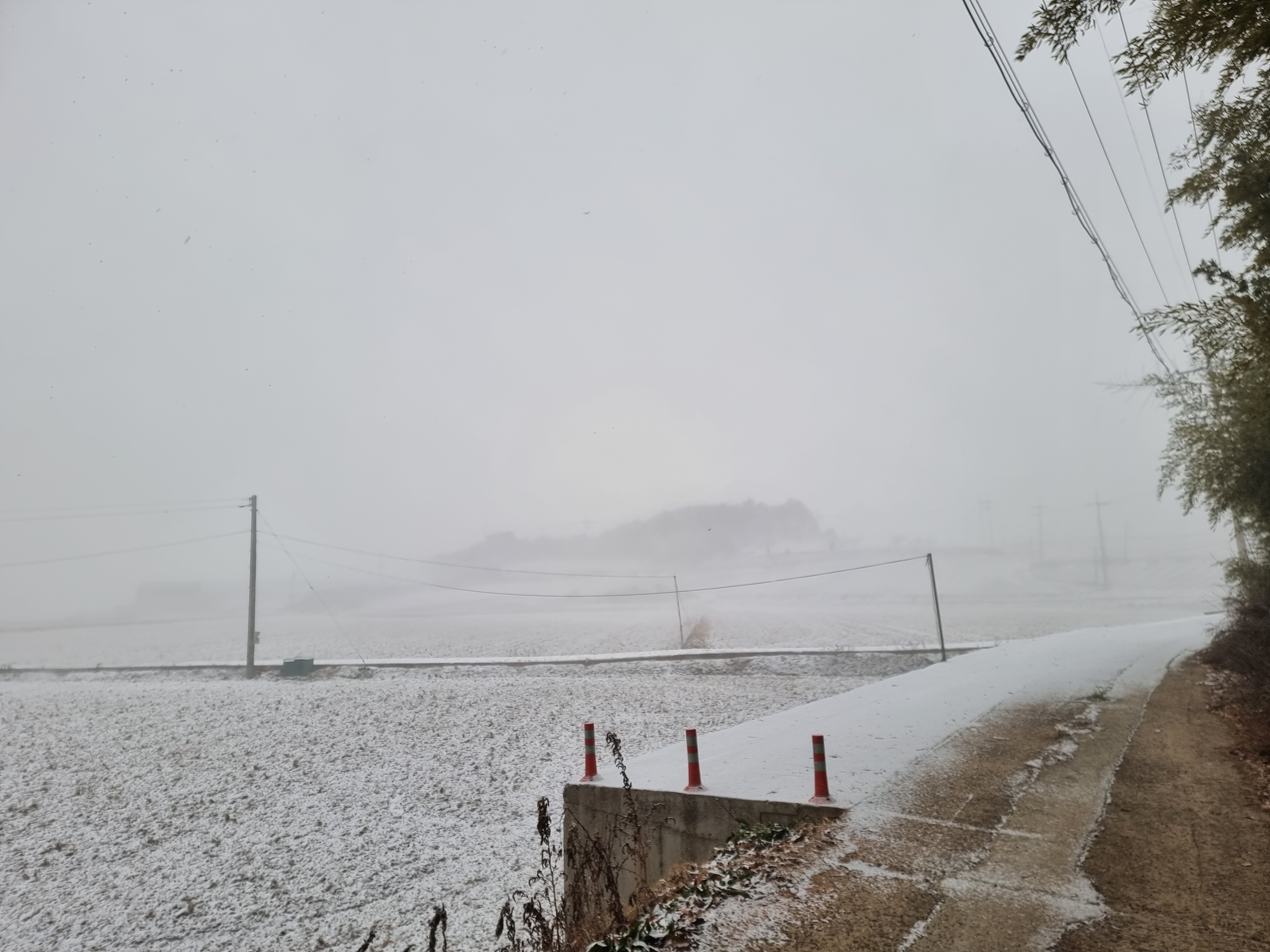 사진을 찍을수가 없다. 사진 찍기위해 장갑을 벗는순간 동낭 걸릴것 같다. 기온이 차니 밧데리도 빨리 소모된다. 할수없이 핸폰을 주머니에 넣고 걷는데만 집중한다. 눈보라가 심하게 몰아칠때는 내몸이 눈사람이 된다. 콧물은 계속 흐른다. 흐르던 콧물이 바람에 날려 얼굴에 붙는다. 그리고 얼어버린다.