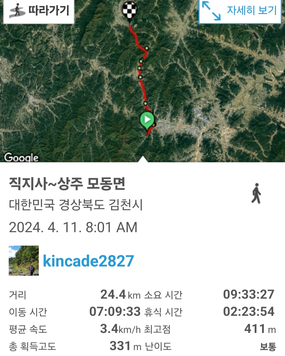 도보거리 24.4키로 누적 1333.3키로