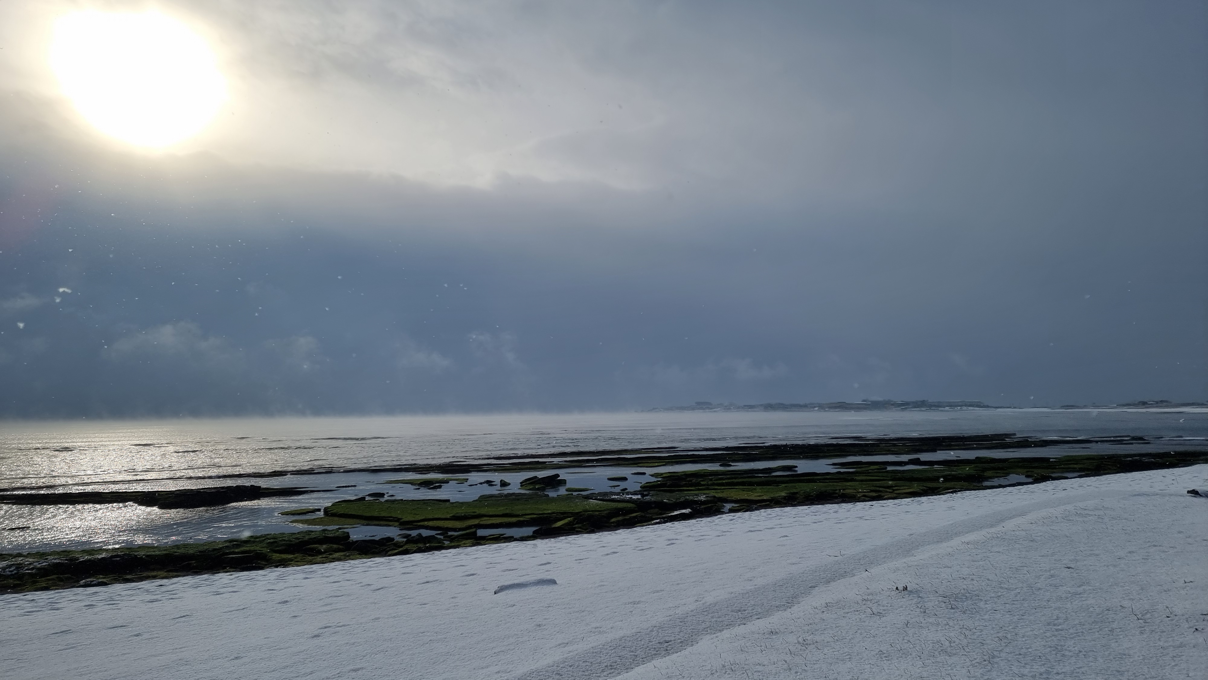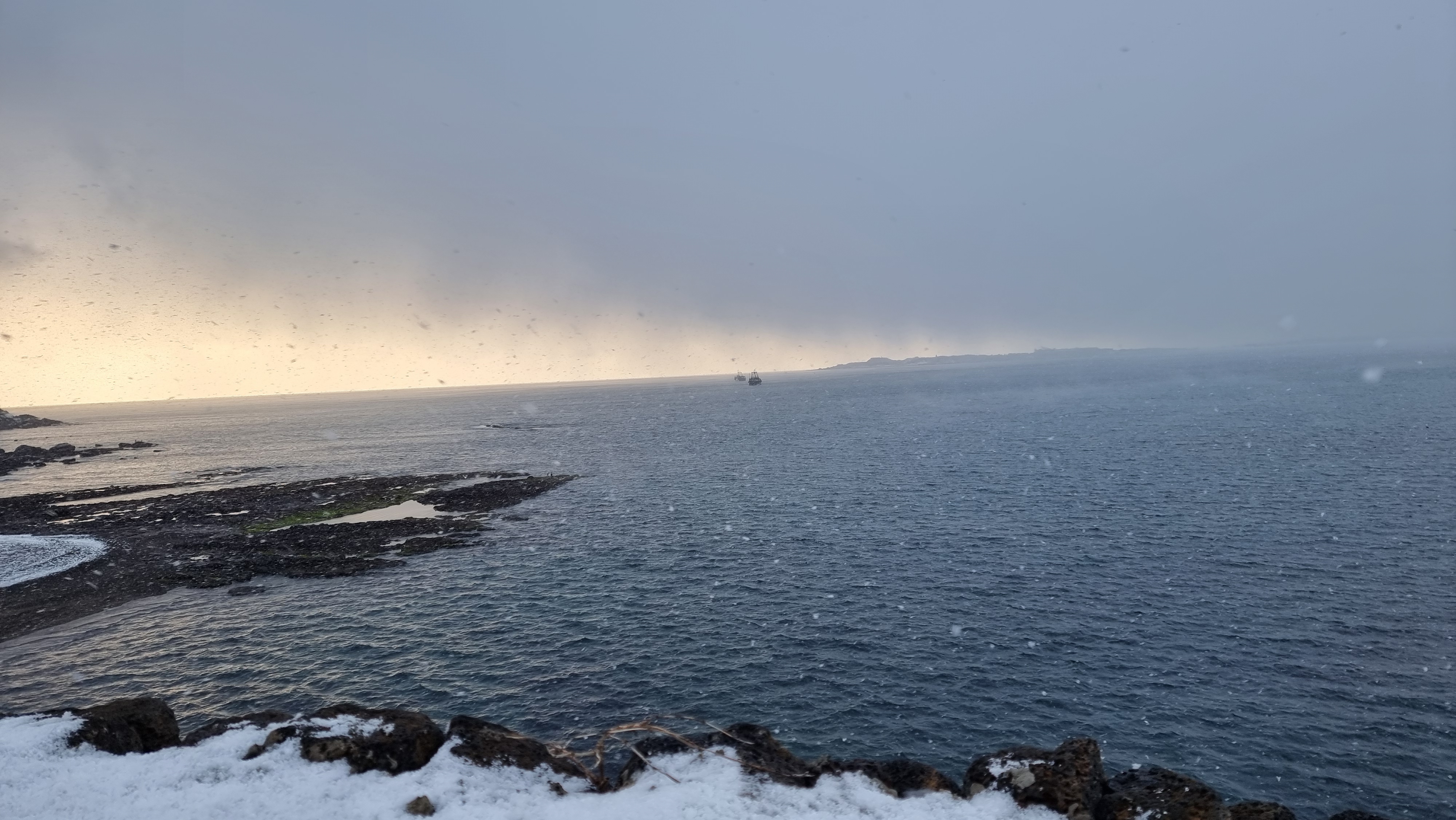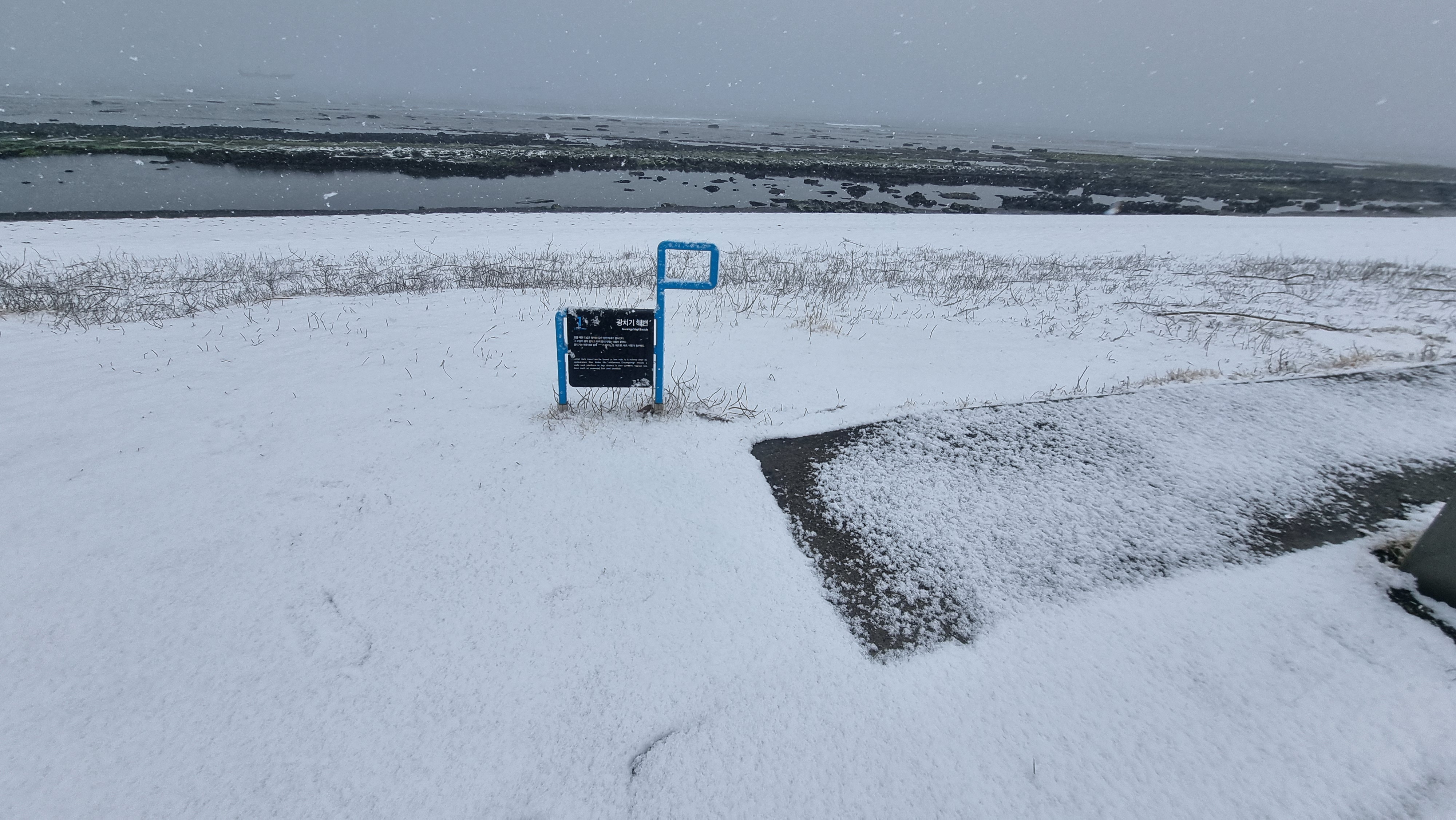 눈이 마니온다. 아무도없는 바닷가를 바라보며