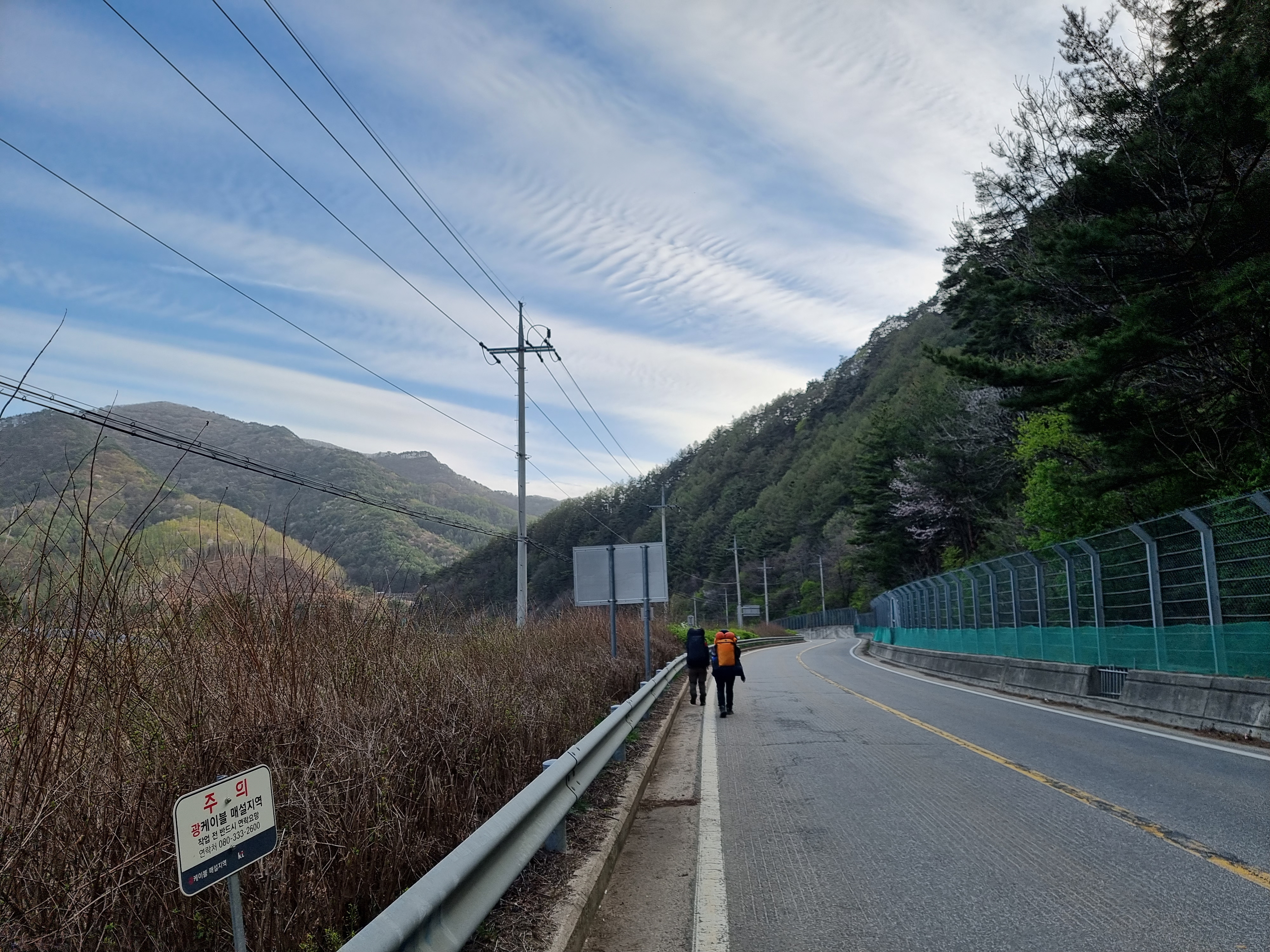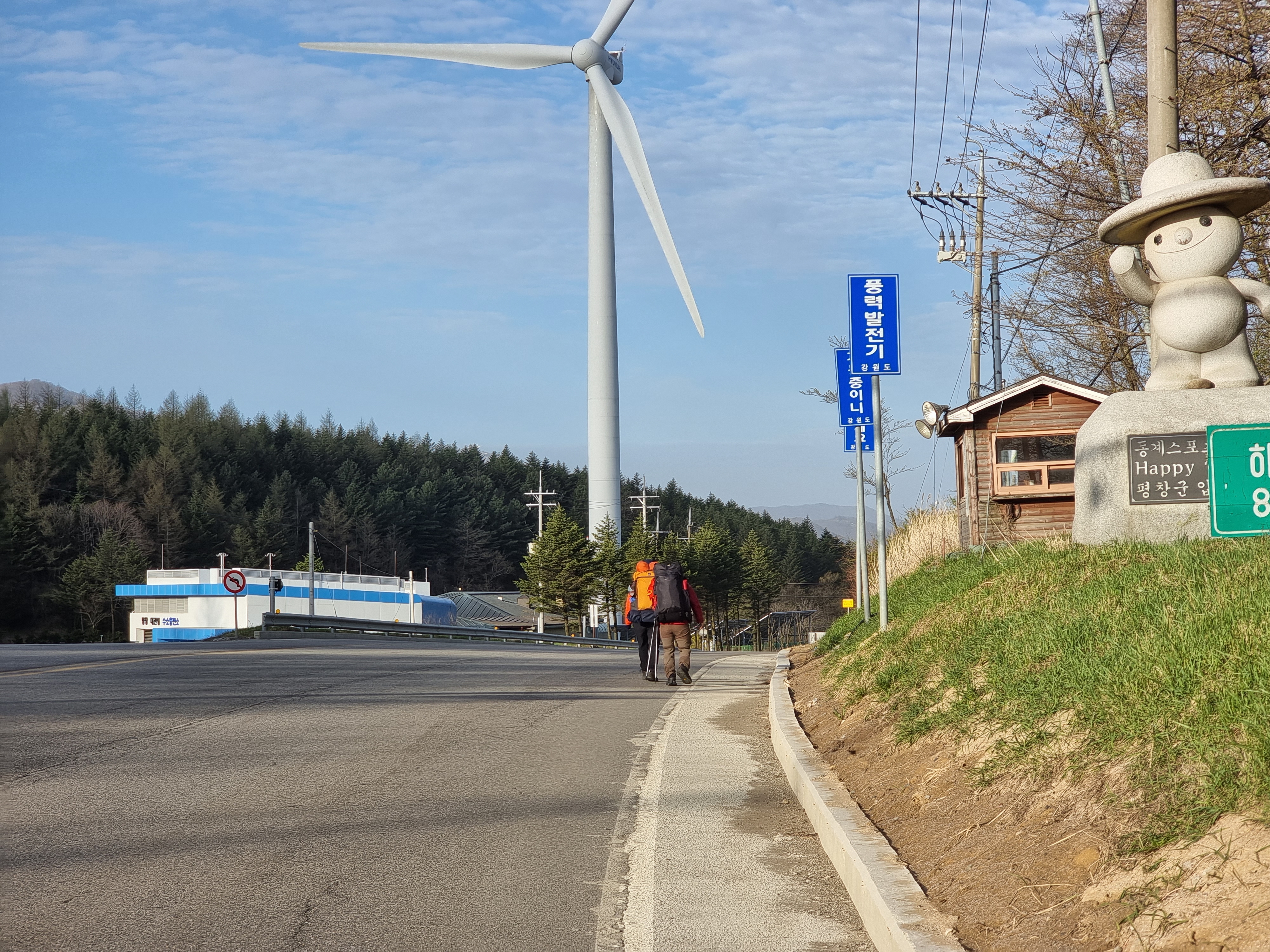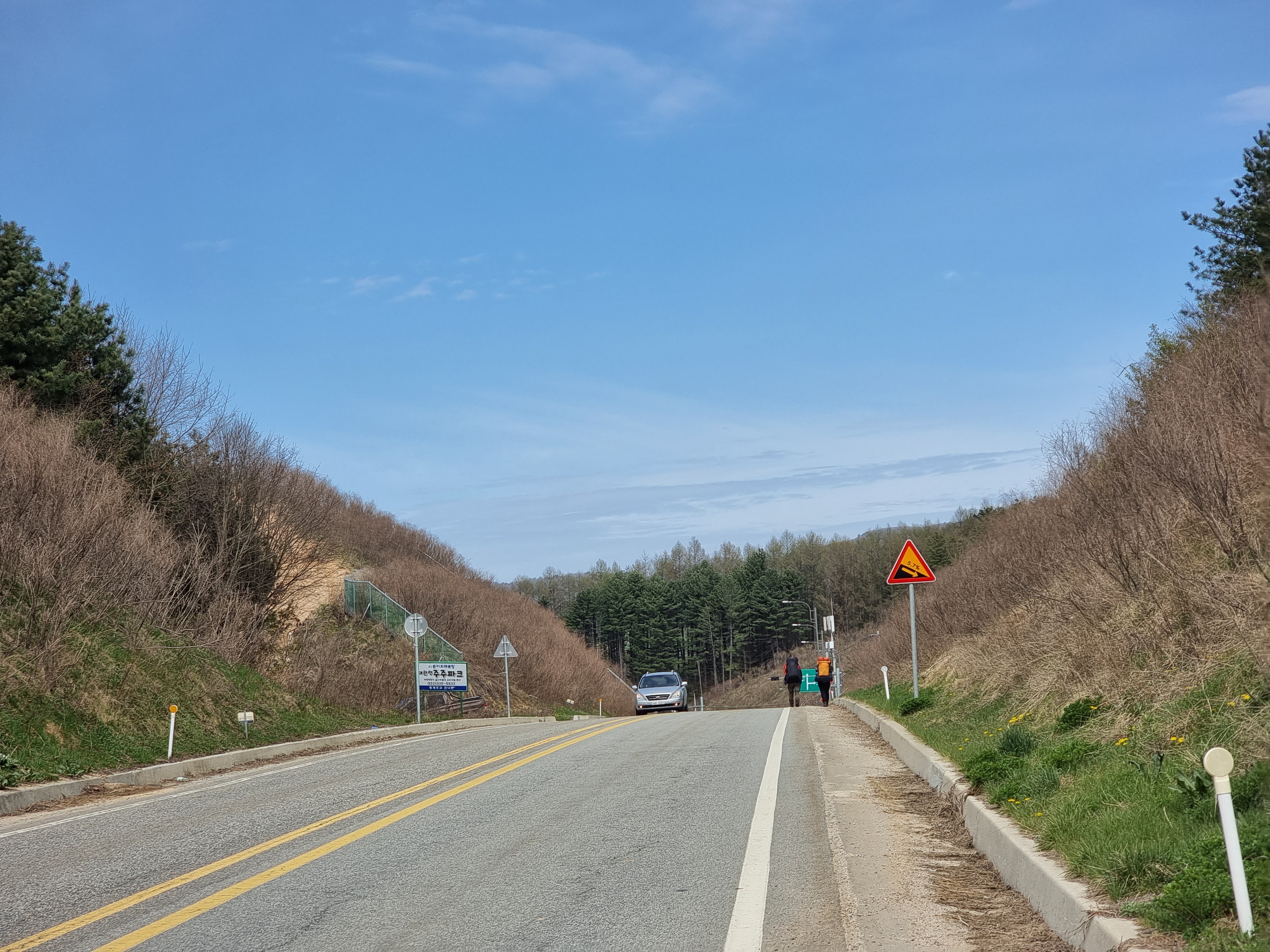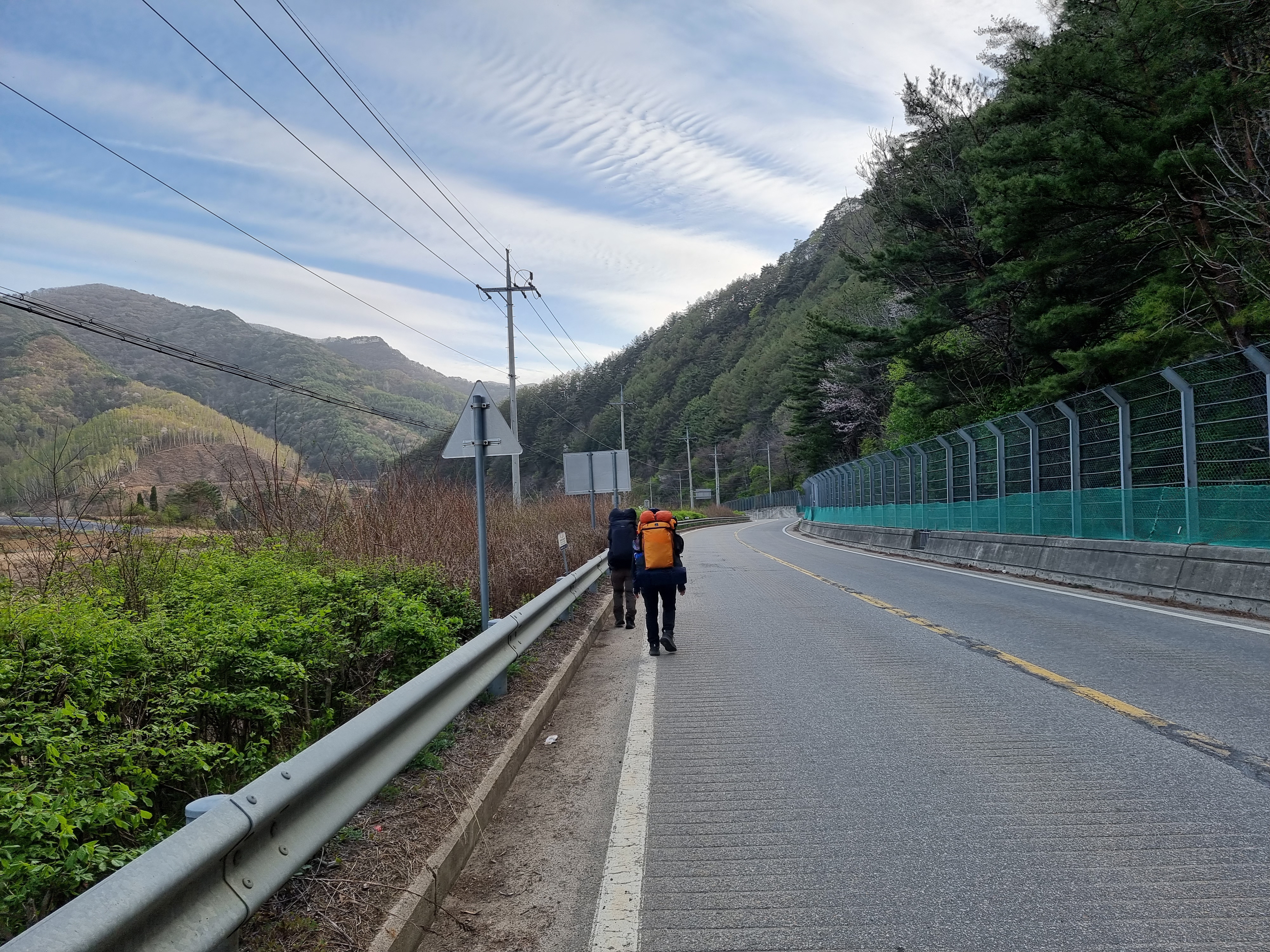 진부 이정표만 보고 걷는다. 10키로정도 걸어왔다.