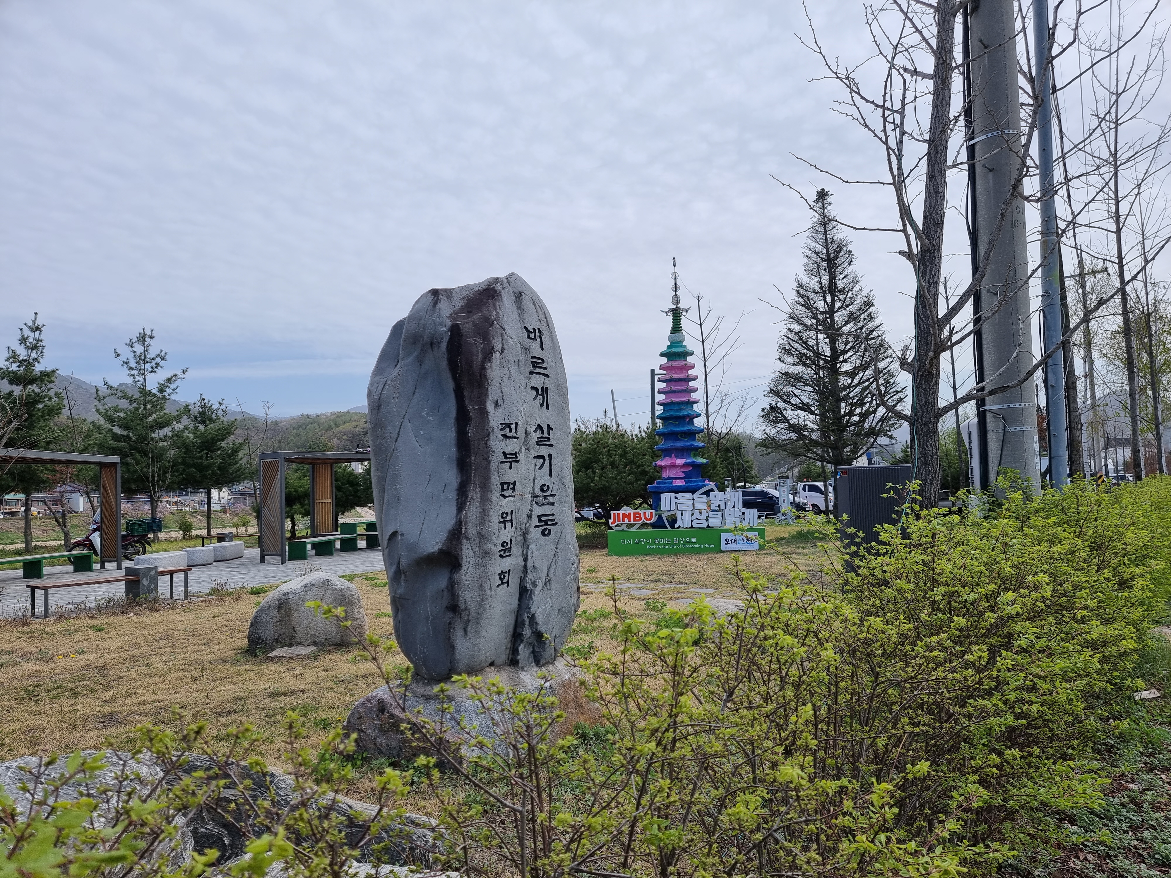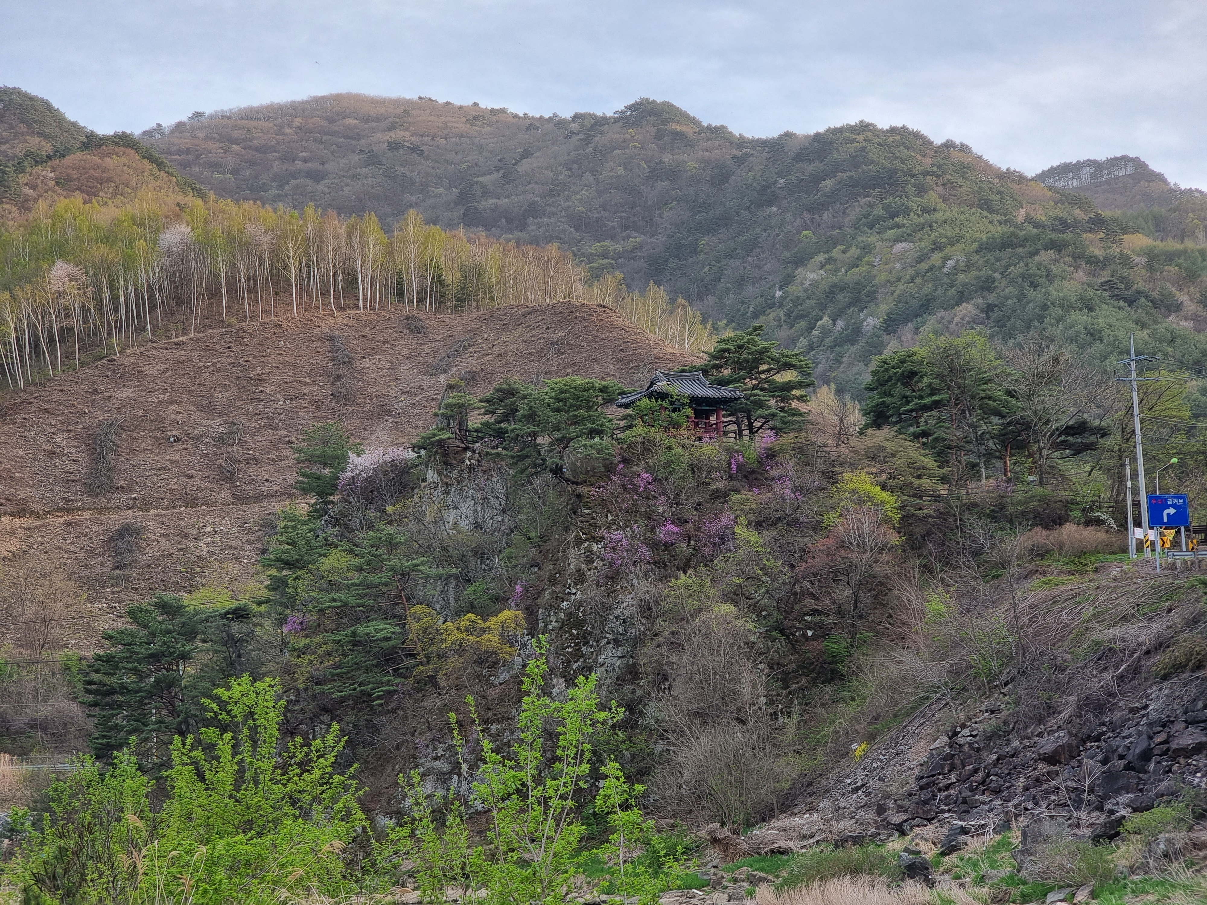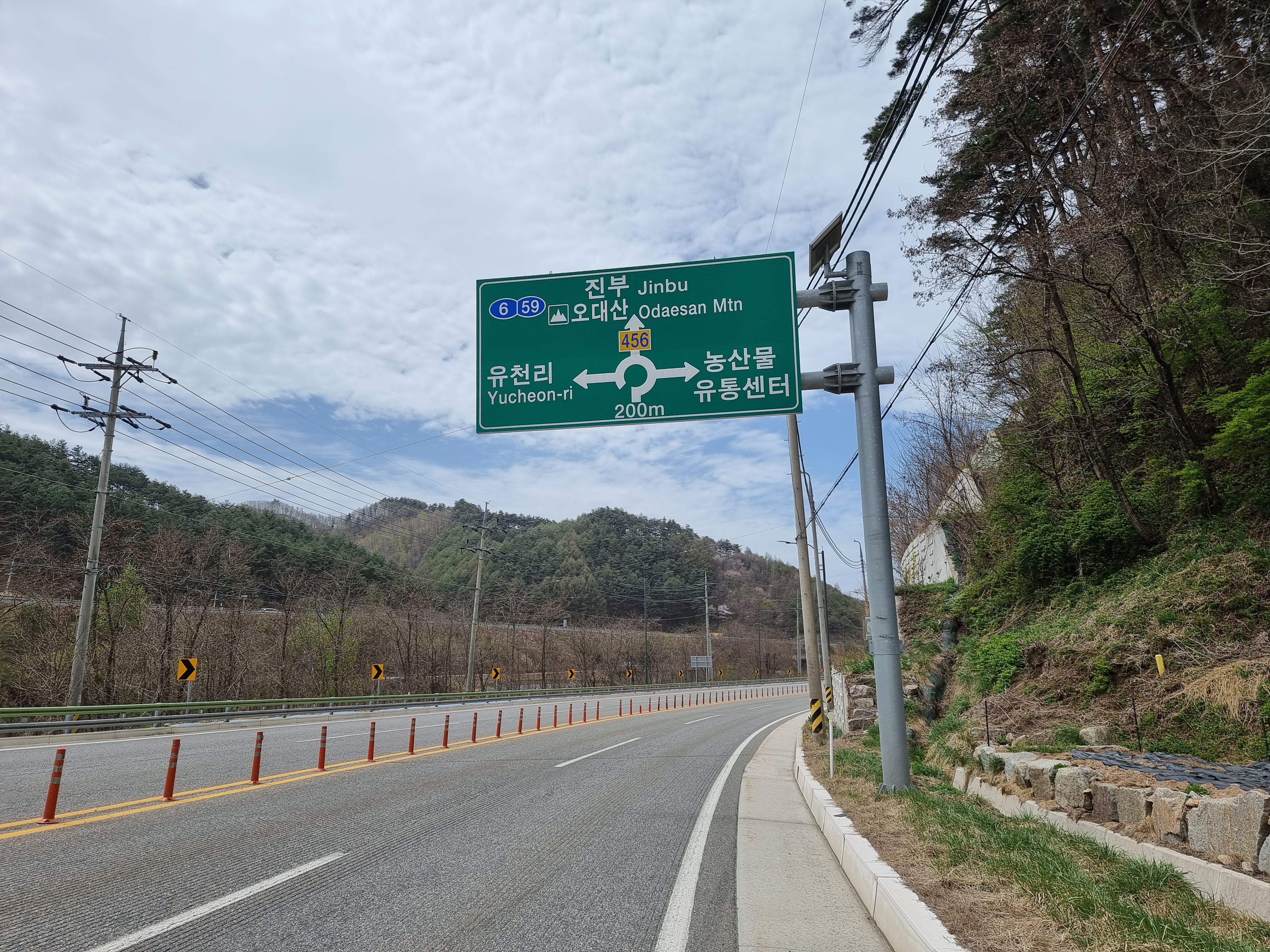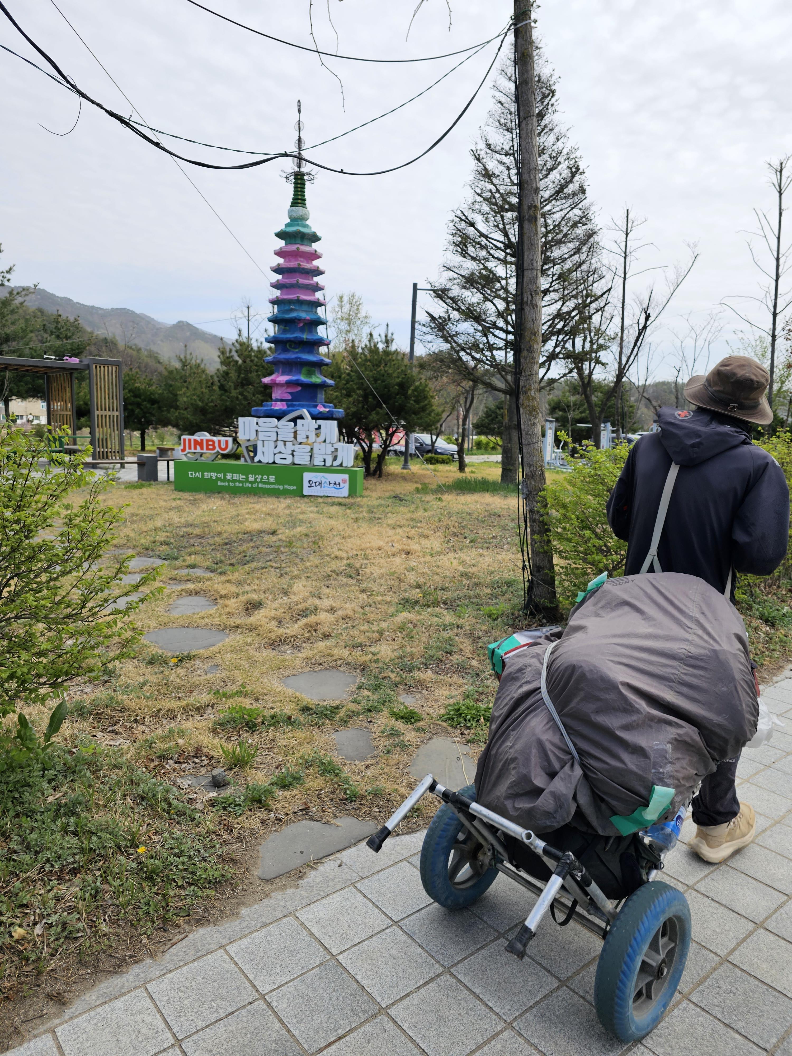 진부 이정표만 보고 걷는다. 10키로정도 걸어왔다.