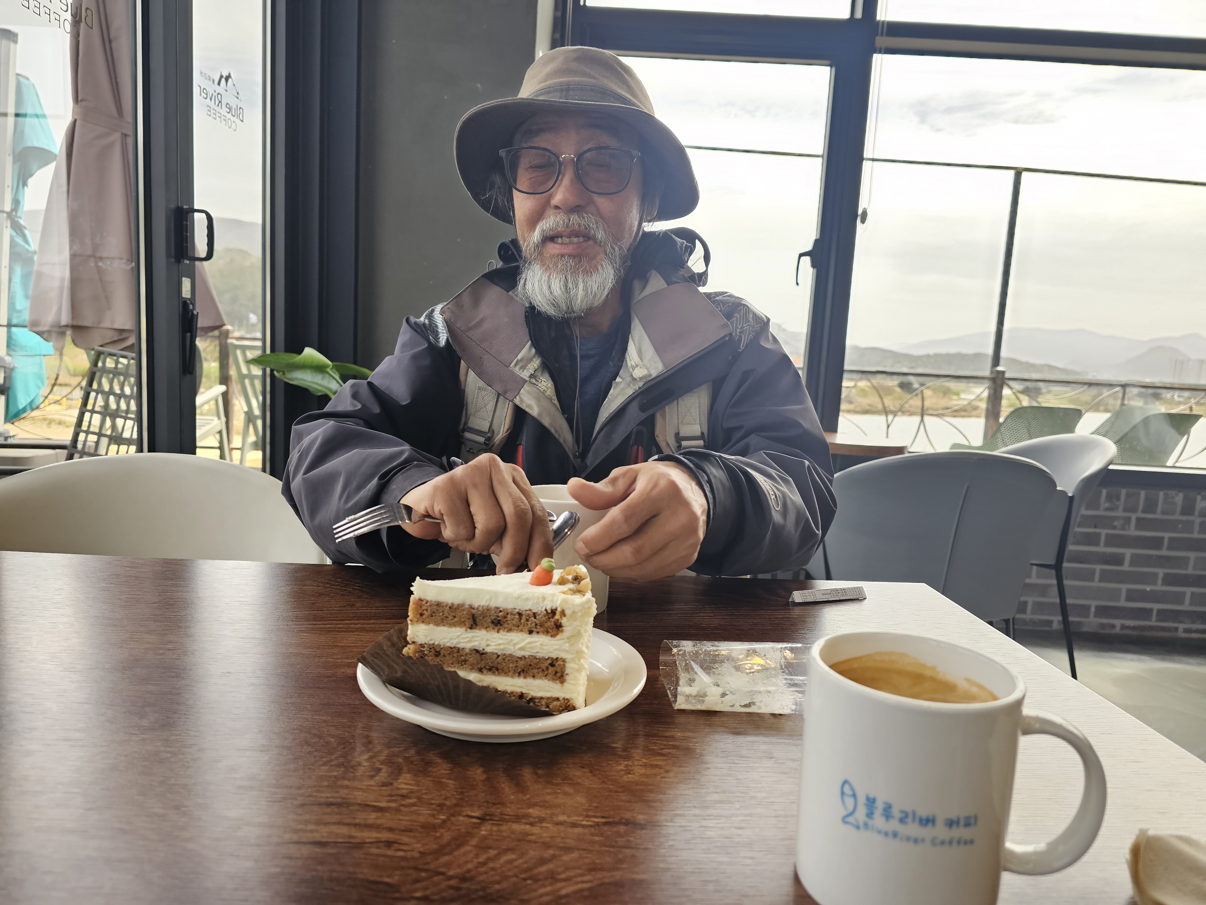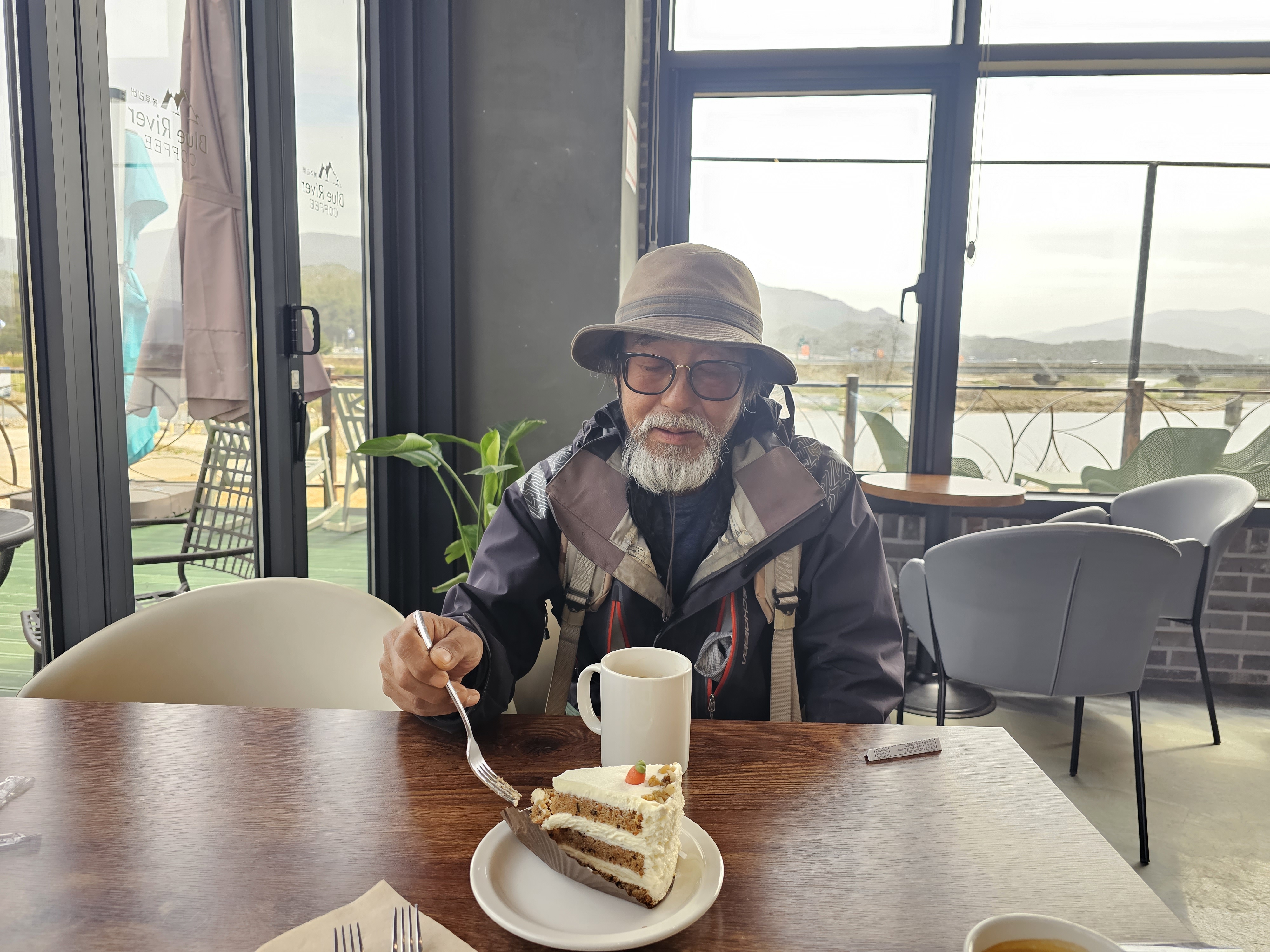 하루 두번 커피숍이다. 이곳서 또 한시간 쉬다가 간다. 평창사는 친구가 전화가 왔다. 자기집에서 하루 자고 가란다. 친구집주소를 찍고 그리로 향해서 걷는다. 이틀후에 도착이다. 현위치에서 50키로가 넘는다. 친구왈 오늘은 청심대에서 자란다.