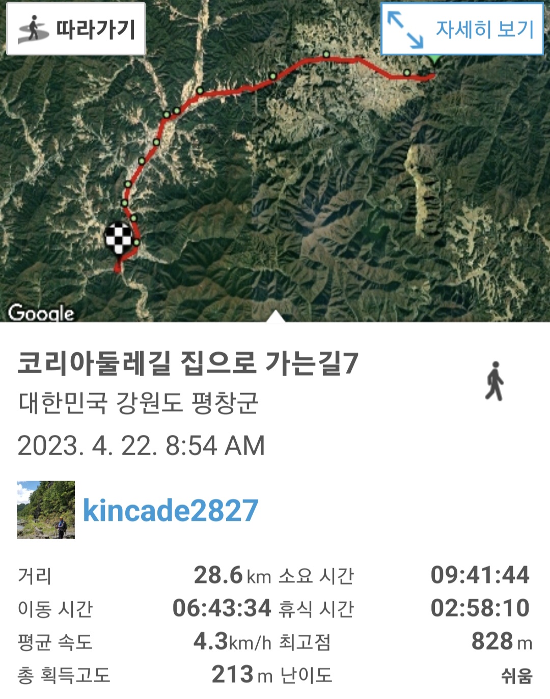 오늘의 도보거리 28.6Km 누적 3087 Km