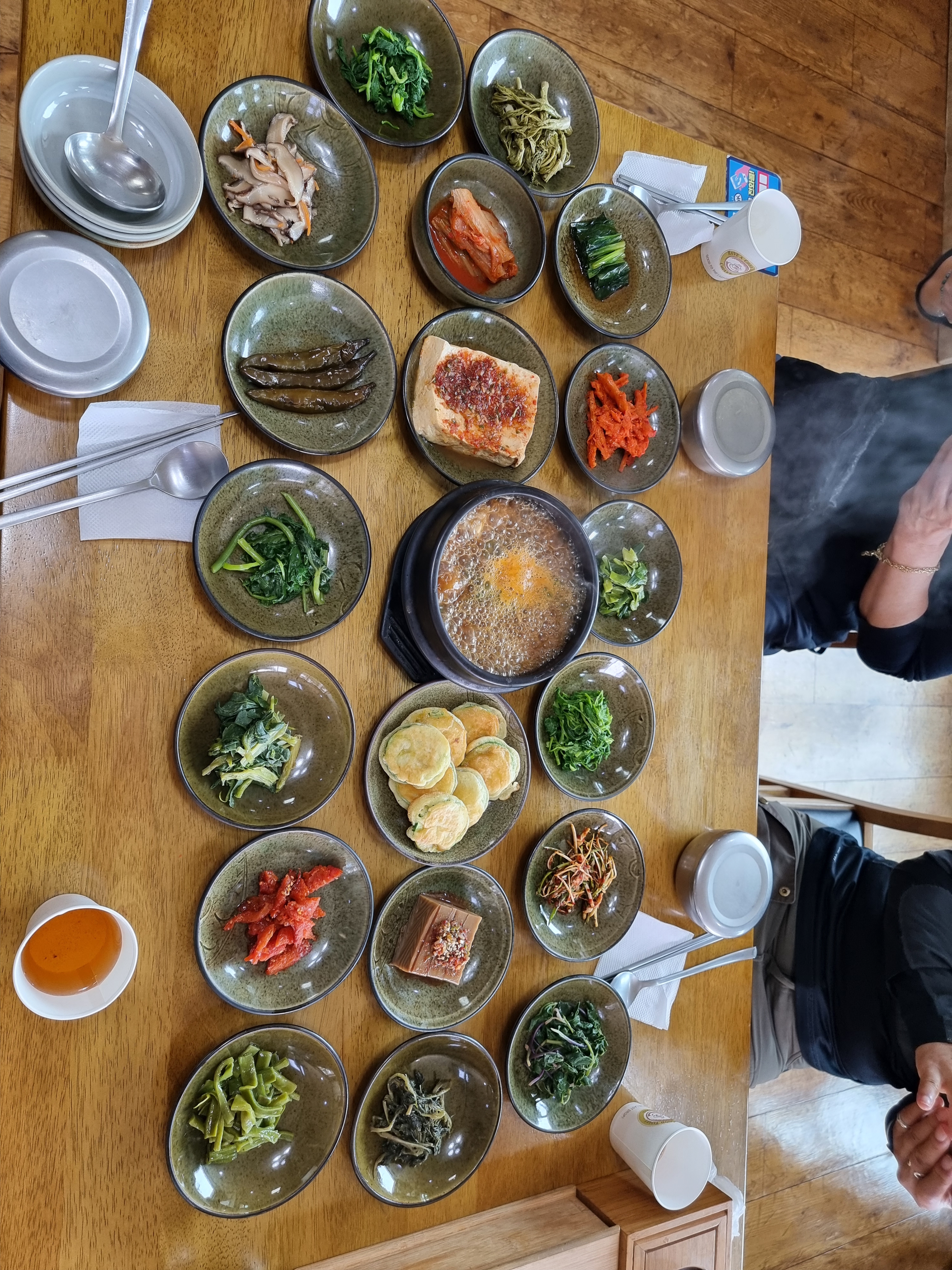 도착해보니 사람이 꽤 많다. 이동네 맛집인 모양이다. 산채정식 셋을 시켰다. 반찬가지수가 꽤 많다.