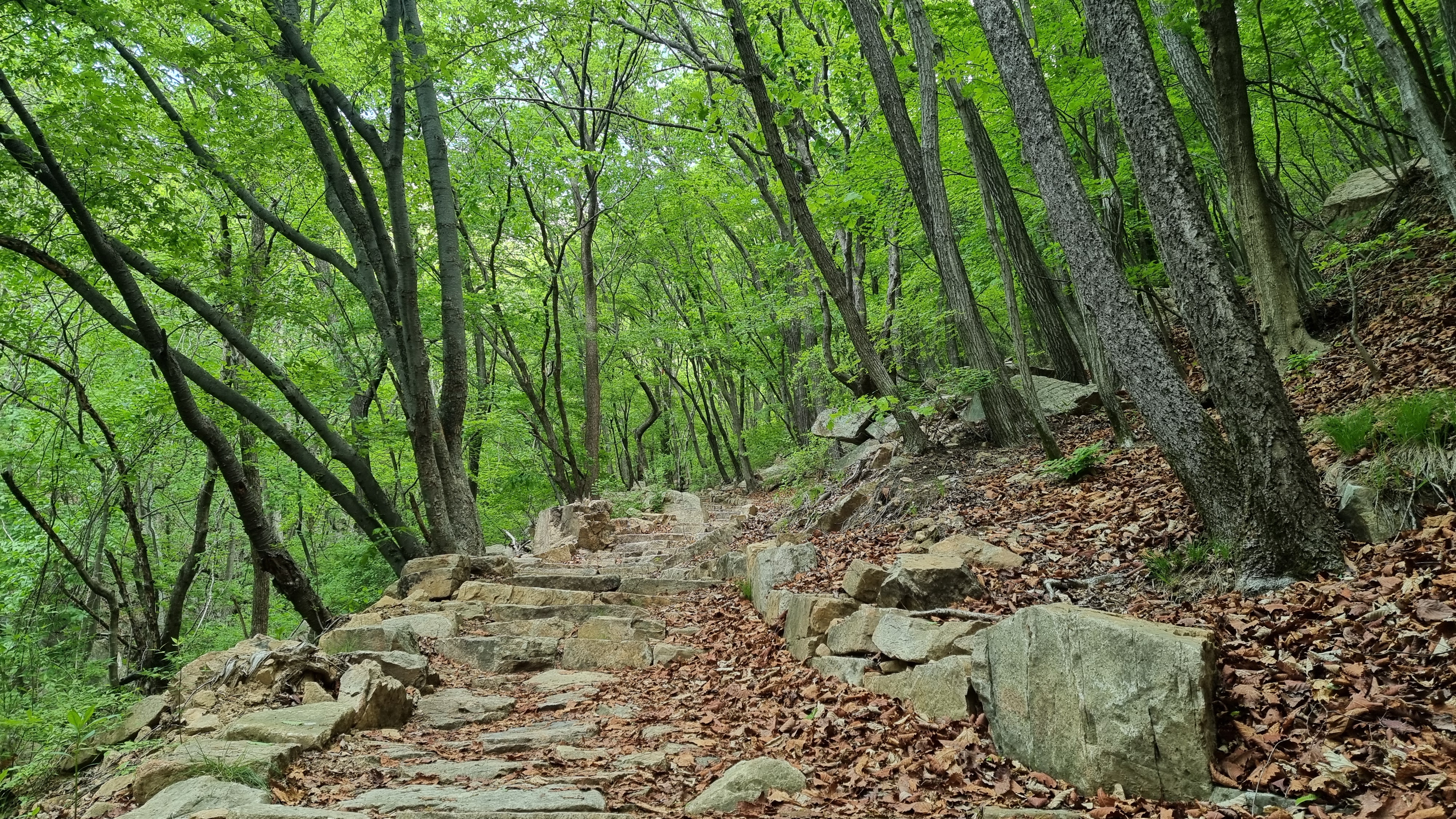 가파르다. 계단도 가파르고 돌계단이 끝없이 이어지는데 팔공산 1365계단을 연상케한다.