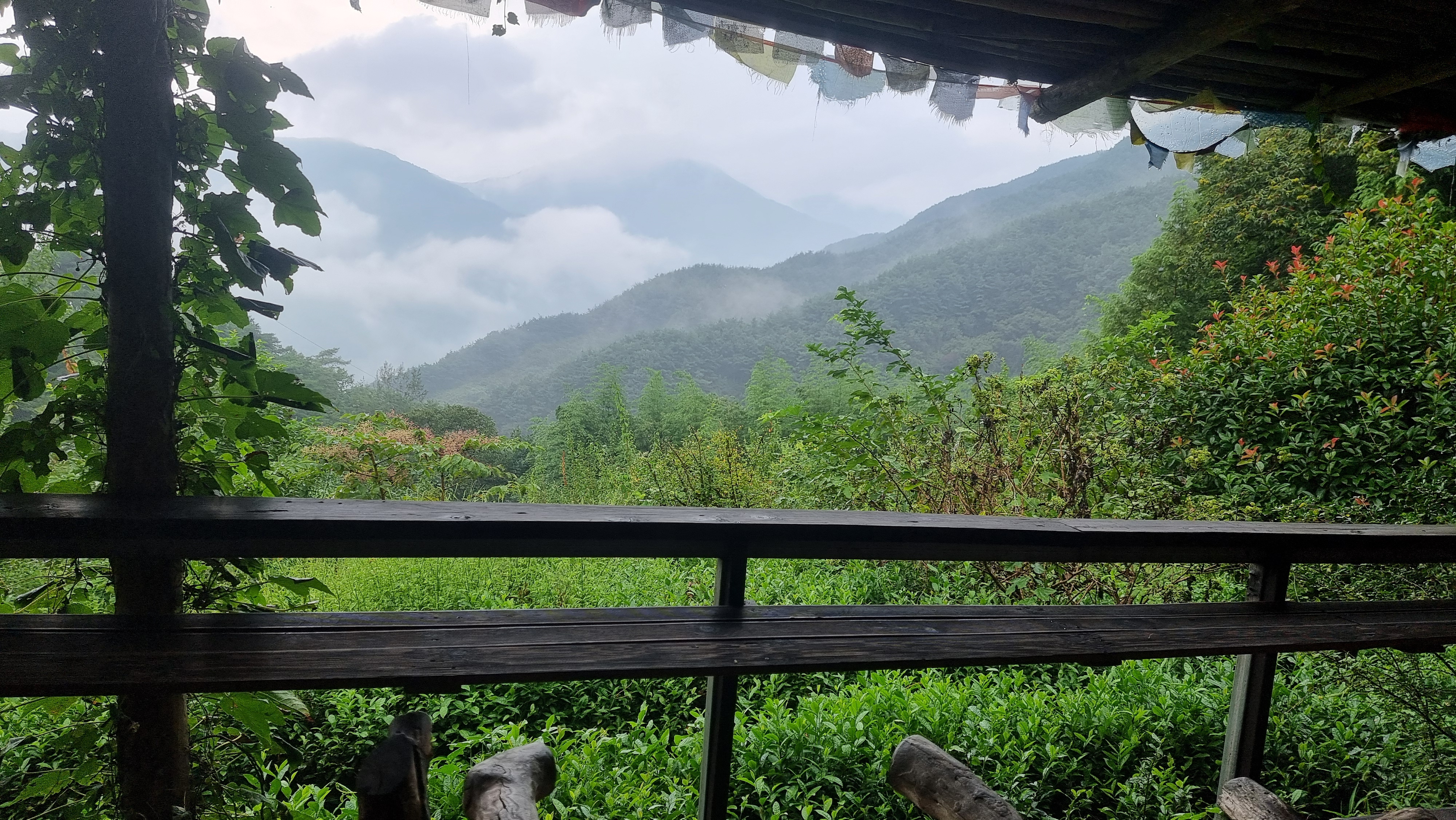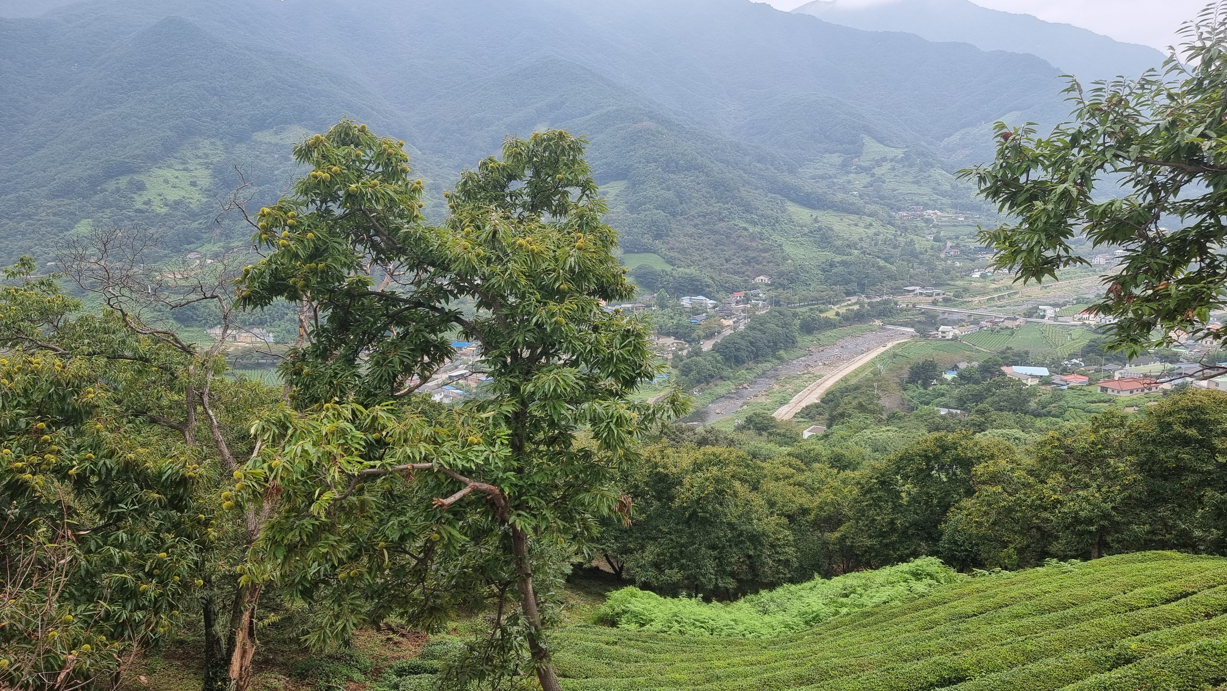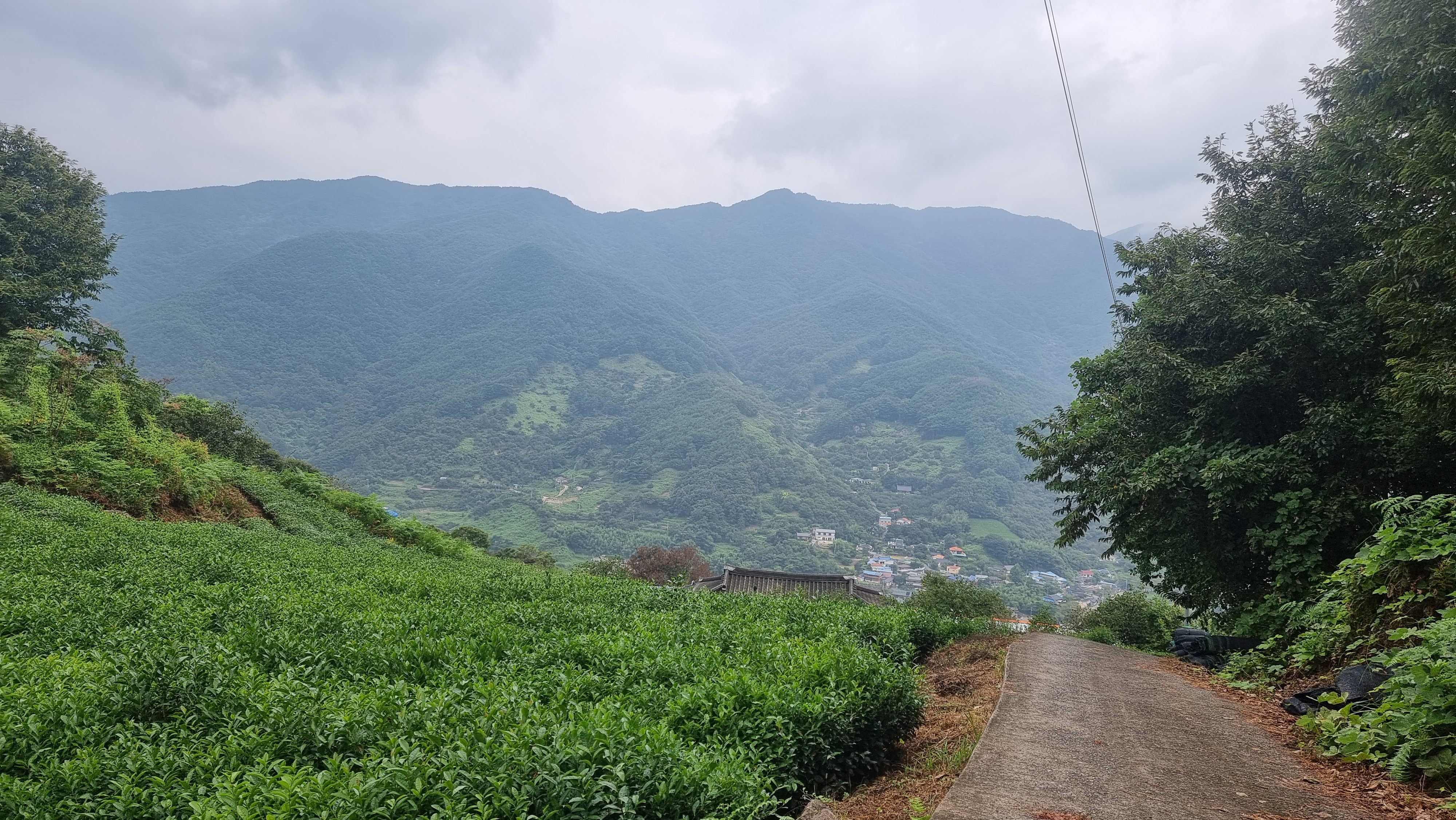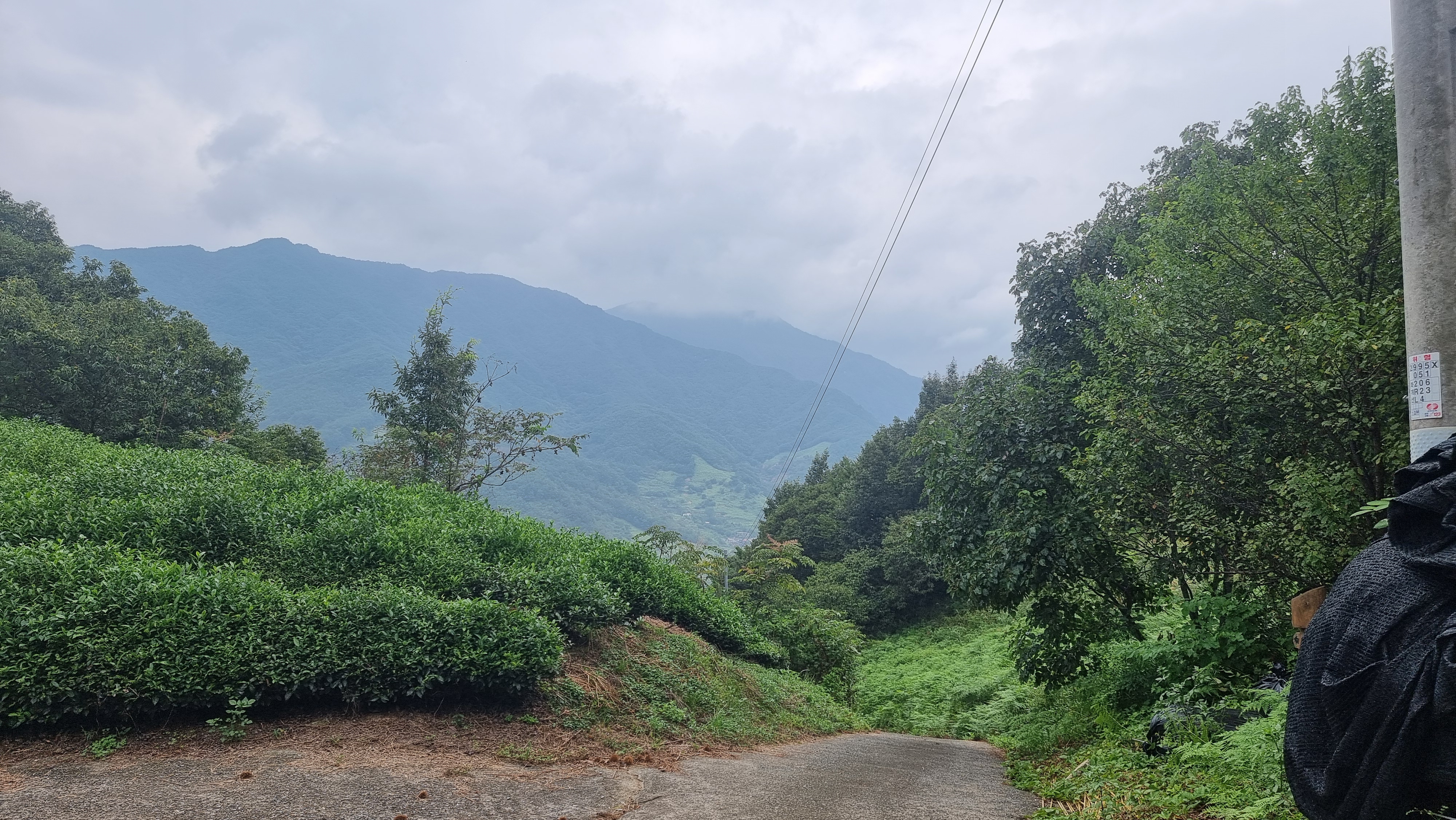 그렇다고 지금 형제봉까지 올라가는것은 체력적으로 무리다. 중촌마을에서 200미터정도 올라가면 하늘호수차밭이다. 4년전에 이곳에들려 차를 마신적이 있다. 그날도 비가 억수같이내렸다.