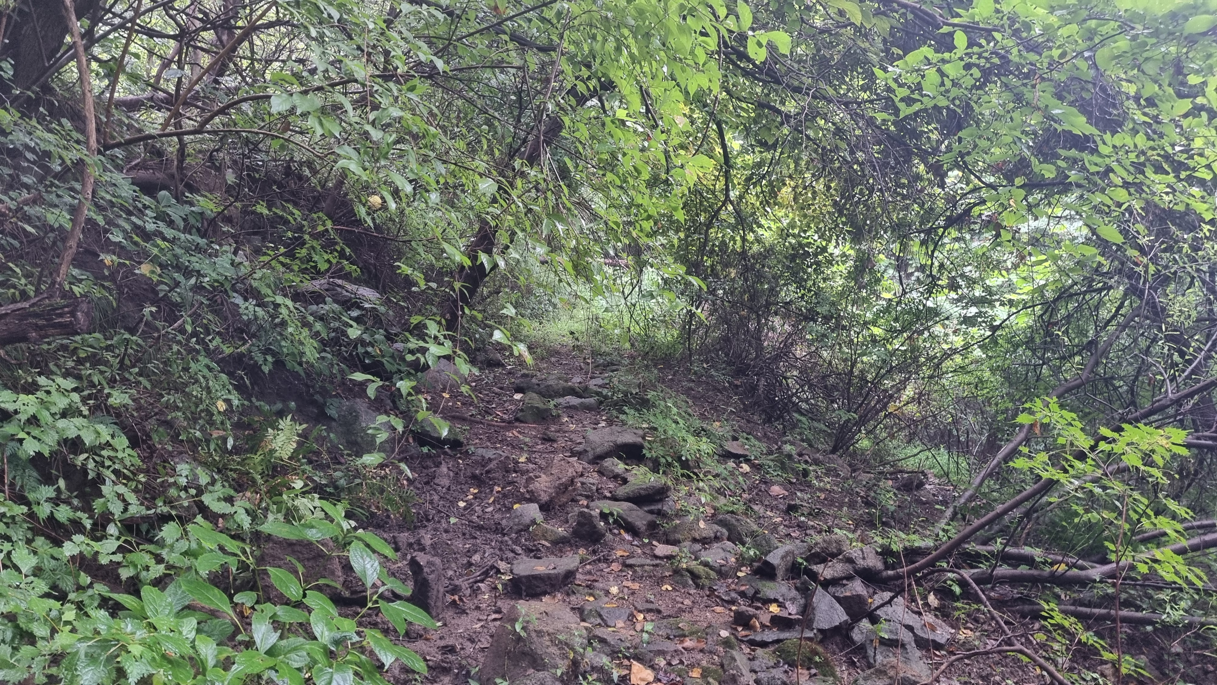 밤새내린비로 길은 미끄럽고 돌들도 젖어있어 조심 또 조심이다. 한발한발 오른다. 풀도 제대로 베지않아